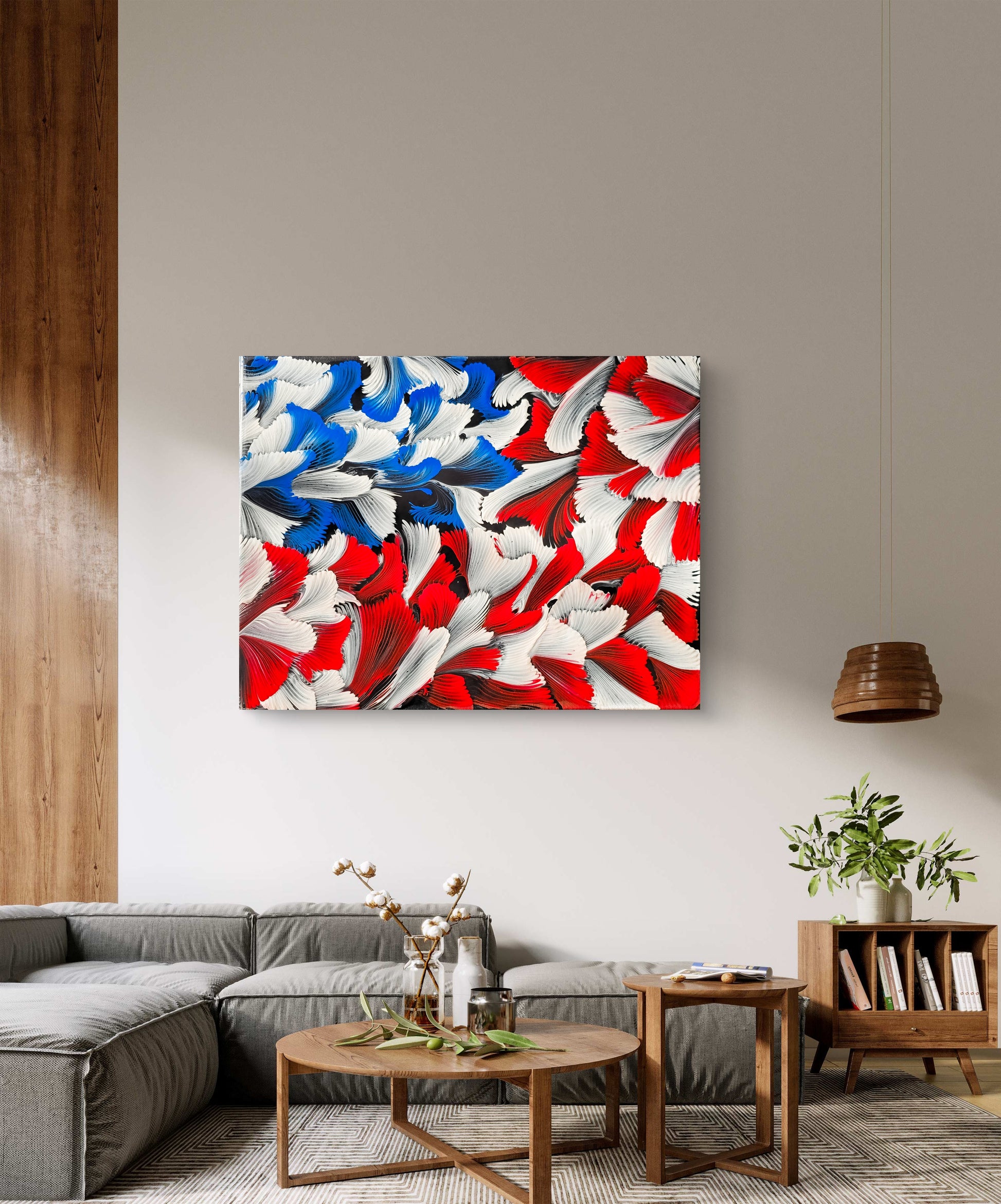 This isn’t just a painting—it’s a punch of patriotic heat, a badass blend of art and attitude, and a reminder that color doesn’t sit still—it roars.